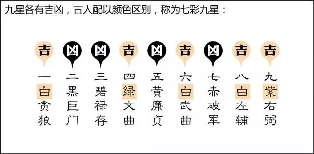 此外,北斗七星(實際為九星,包括左輔星和右弼星)的運行規律與地球上自然現象和人事吉凶之間存在某種相應的暗合關係。在三元九運的不同時間,都有其中一顆星起著主導作用,並且,每顆星對地球發揮作用的時間正好為二十年。古代先賢們將北斗九星分別取名為貪狼、巨門、祿存、文曲、廉貞、武曲、破軍、左輔、右弼星,並確定了三元九運中每一運的二十年由哪顆星主事,即以二十年作為一運,由北斗九星輪流掌管。以此為基礎,通過三元九運與洛書九宮、北斗九星、以及九氣間的有機結合,建立和發展了一套「時」與「空」統一的、可以推算陽宅運氣和人的吉凶禍福的較為完備的玄空風水理論。
