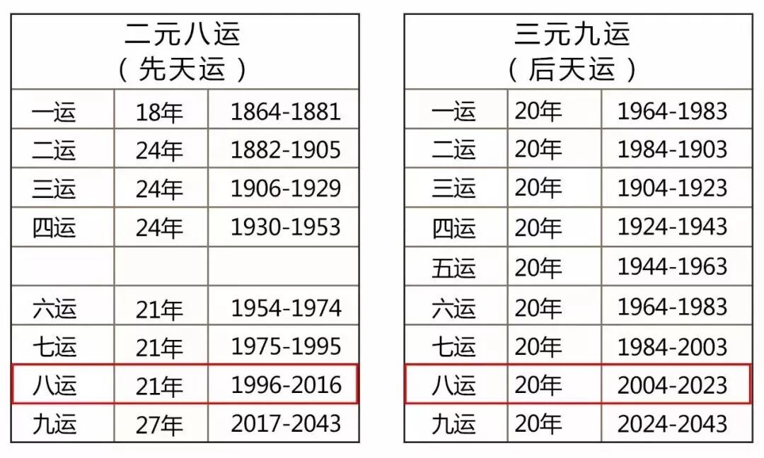 那麼按照這個元運的時間規律,現在掌管著我們中國的八運要到2023年才結束。
