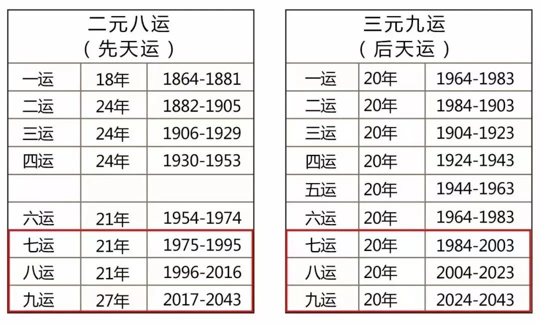 所以從2017年到2023年這七年的時間,便是八運和九運兩個元運交接工作的時間,也就是九運時代的開啟,八運時代的衰退。