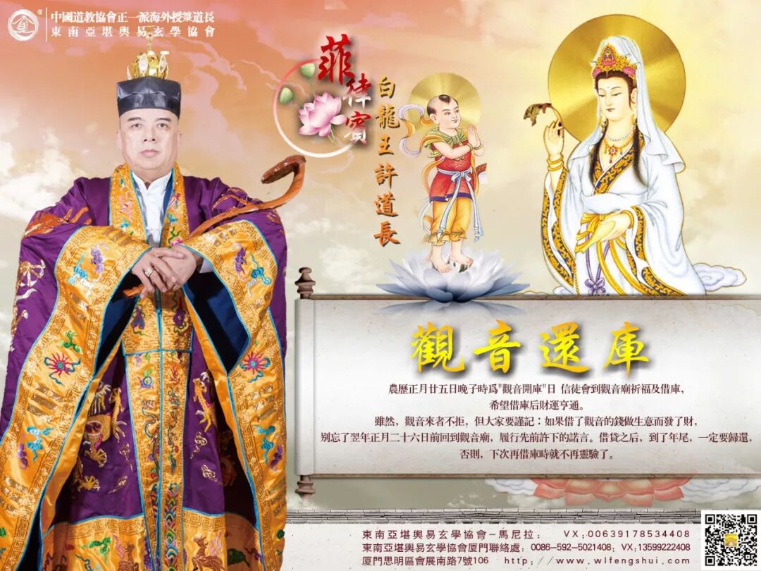 地點:菲律賓白龍王廟及廈門萬靈總殿觀音菩薩神殿前即可。