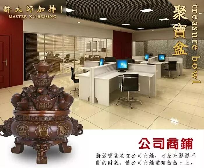若將許大師聚寶盆擺放在財務部門的財位方,需要大一點的比較適當,納氣夠多,格局夠大,才能財源不斷;若是擺在房間內,則可用小一點的。