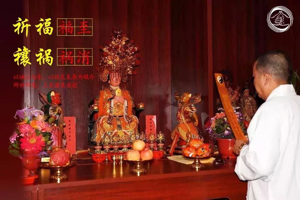 萬靈總殿善信祭祀祈福通常是上午吉時,上完供品之後,先點燈(蠟燭),接著獻茶、焚香(祈福疏文),香爐要插三柱香,行三拜九叩禮拜,敬第一次酒、請神明降否,接著進行第二次敬酒(有所祈求,就可以告訴神明,並說明如何答謝),當香燒完三分之一時,雙手捧著祈福疏文、金紙元寶向神明供拜,接著按順序燒化,金紙也可選有四色金、大壽金、壽金、刈金、福金等,燒完第三次敬酒、擲笅問神明用畢否,如用畢撤下供品,酒灑於紙灰上頭。