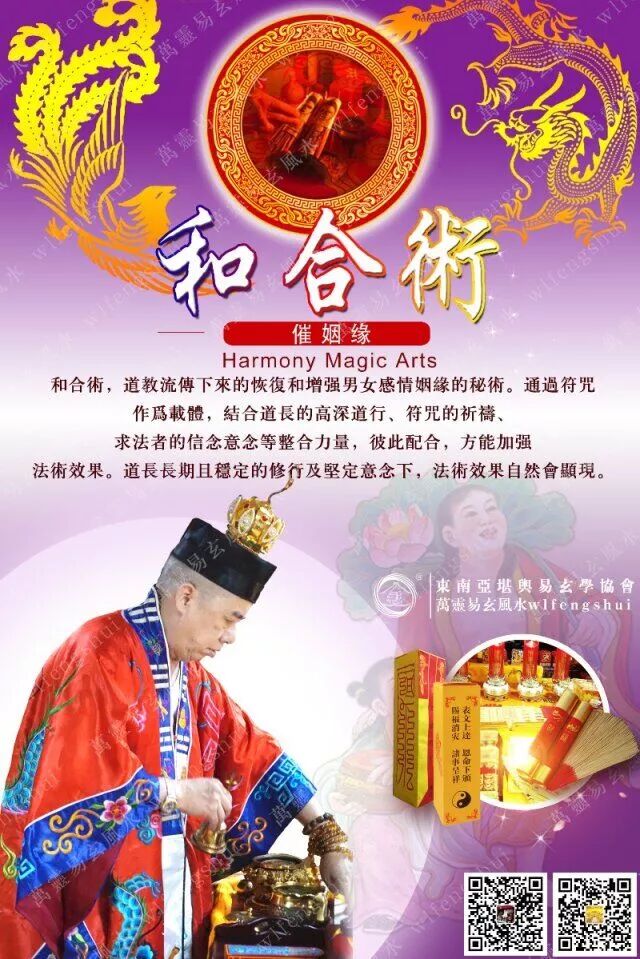 東南亞白龍王許道長的獨特方法,與國內通常採用的和合術有很多的不同,許少峰老師致力於獨家的符咒道法、中醫五行等等、包括結合西方思想、開導善信心靈,和合術效果不一,因為求法者磁場折射反應不一樣,每個人都有元神,或是阻礙你感情的陰債或是冤親債主還是靈(嬰靈也算),不管開出來的符咒是神力還是鬼力,一些有的沒的好打發!但是人的元神意志力是很強的,這些鬼力神力必須要花費一段時間,來改變對方得心智,所以說為什麼分手半年內的效力比較好,因為雙方或多或少還有點情愫,那意志力是最好改變的!